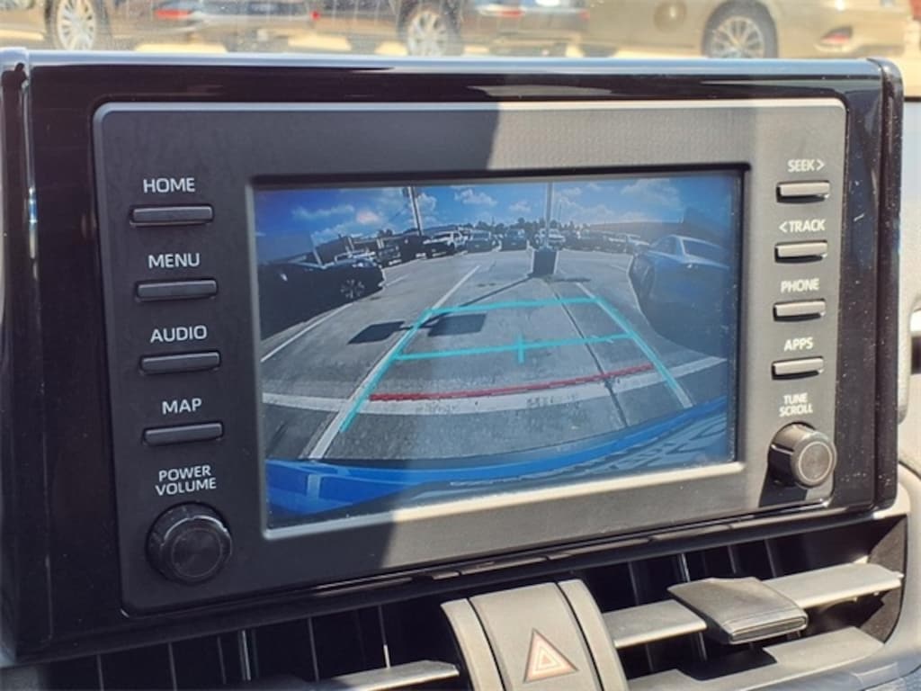 This 2019 Toyota RAV4 XLE in Blue comes with the following features: 2.5L 4-Cylinder DOHC Dual VVT-i 8-Speed Automatic FWD Cloth Cloth, 17" x 7.0J Alloy Wheels, 4-Wheel Disc Brakes, 6 Speakers, ABS brakes, Air Conditioning, Alloy wheels, AM/FM radio, Apple CarPlay, Auto High-beam Headlights, Automatic temperature control, Axle Ratio: 3.177, Brake assist, Bumpers: body-color, Delay-off headlights, Driver door bin, Driver vanity mirror, Dual front impact airbags, Dual front side impact airbags, Electronic Stability Control, Emergency communication system: Entune Safety Connect, Exterior Parking Camera Rear, Fabric Seat Trim, Four wheel independent suspension, Front anti-roll bar, Front Bucket Seats, Front Center Armrest, Front dual zone A/C, Front fog lights, Front reading lights, Fully automatic headlights, Heated door mirrors, Illuminated entry, Knee airbag, Low tire pressure warning, Occupant sensing airbag, Outside temperature display, Overhead airbag, Overhead console, Panic alarm, Passenger door bin, Passenger vanity mirror, Power door mirrors, Power moonroof, Power steering, Power windows, Radio data system, Radio: Entune 3.0 Audio, Rear anti-roll bar, Rear seat center armrest, Rear window defroster, Rear window wiper, Remote keyless entry, Roof rack: rails only, Speed control, Speed-sensing steering, Split folding rear seat, Spoiler, Steering wheel mounted audio controls, Tachometer, Telescoping steering wheel, Tilt steering wheel, Traction control, Trip computer, Turn signal indicator mirrors, and Variably intermittent wipers.